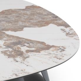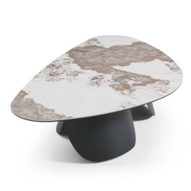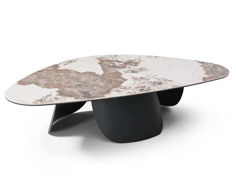 Si vous aimez le mobilier moderne aux formes organiques, alors vous allez craquer pour la Table basse OSMOSE Pandora. Son plateau aux courbes organiques révèle un motif céramique Pandora unique, mêlant des nuances de blanc, de brun et de gris. Le pièteement est en métal laqué époxy noir, dessus en céramique Pandora 6mm sur verre 6mm