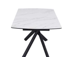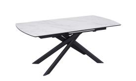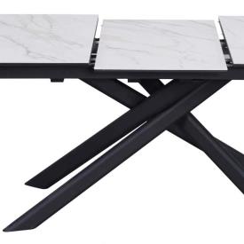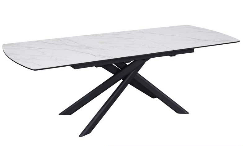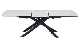 Châssis et piétement en métal noir, dessus et allonges pop-up en céramique Jade blanche 876 brillante épaisseur 6mm collé sur du MDF.