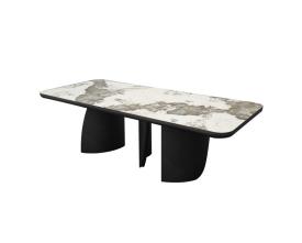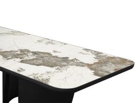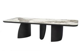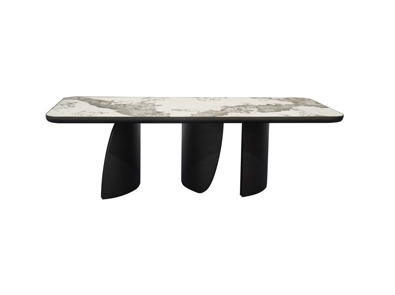 Sublimez vos repas avec la Table repas JOHANA 2m40 ! Son plateau rectangulaire en céramique marbré Pandora, repose sur trois pieds massifs aux formes douces et organiques. Un design contemporain et robuste, parfait pour des moments de convivialité.